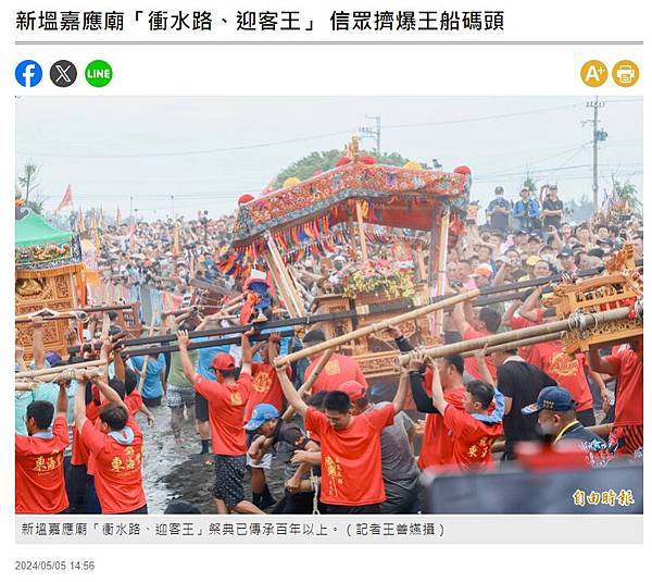 新塭嘉應廟「衝水路、迎客王」 信眾擠爆王船碼頭 - 生活 - 自由時報電子報 https://bit.ly/3JODE0G