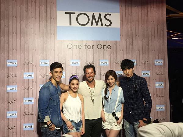 為了感謝,TOMS創辦人麥考斯基特地在台舉辦派對,邀請支持TOMS的VIP一起同歡,藝人修杰楷、張景嵐、熊熊、安哲也受邀與會,分享響應TOMS「One for one」活動的心得,以及平日如何行善。