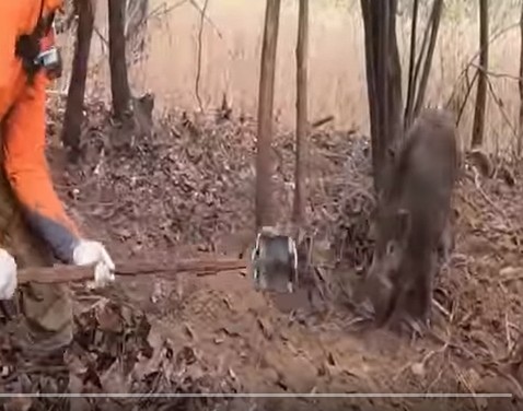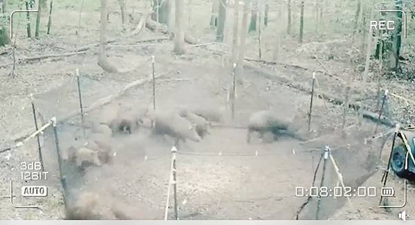 他們在這頭豬身上裝上無線電項圈,把它放了,然后跟蹤它并找到了沼澤里的各個豬群,在給這頭豬戴上無線電的不久后,獵人們消滅了687頭野豬。