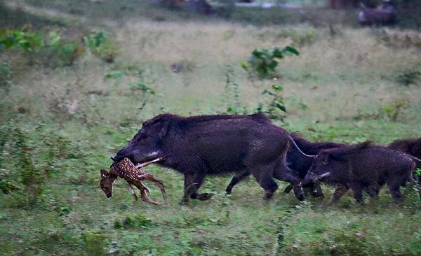 不僅如此,野豬還會吃在地面筑巢的鳥類--蛋、幼鳥、成鳥。青蛙、蜥蜴、海龜和蟾蜍,它們什麼都不放過,甚至還會 吃家畜,你沒看錯,特別是羊羔和牛犢。它們還吃鹿和鵪鶉等野生動物, 就連瀕臨滅絕的海龜蛋都不放過。
