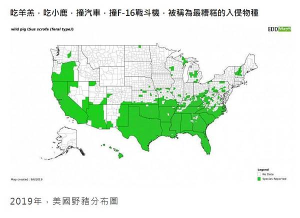 2019年,美國野豬分布圖