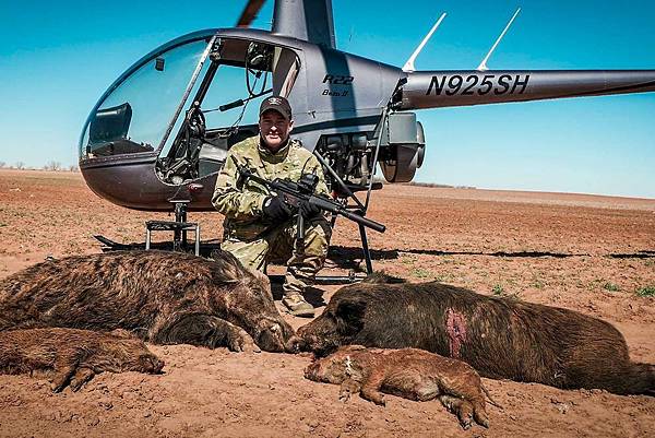 受災最嚴重的德克薩斯州野生動物保護機構發現, 最好和最經濟的方法還是使用直升機(每小時600美元)。德州獵人每年捕獲約50萬頭野豬,其中一半是從空中被射獵的。