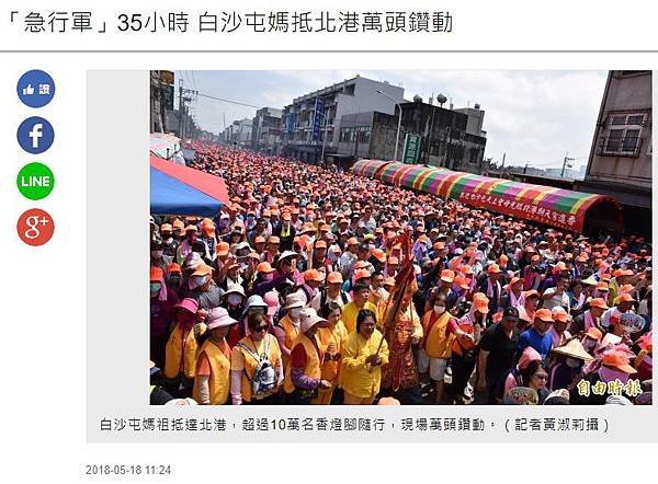 分享10萬信眾擠爆!白沙屯媽祖婆徒步進香出發了到Facebook 分享10萬信眾擠爆!白沙屯媽祖婆徒步進香出發了到Line 分享10萬信眾擠爆!白沙屯媽祖婆徒步進香出發了到Google+
