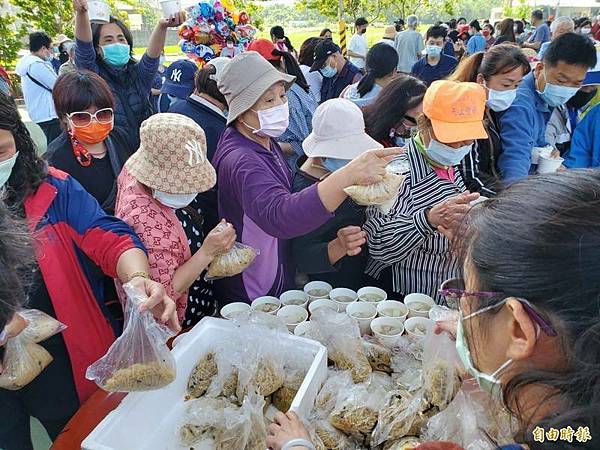 苗縣通霄「四庄媽」回鑾萬人吃飯擔,30日中午登場。圖為去年盛況畫面。(資料照)