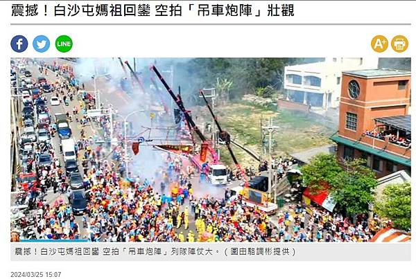 震撼!白沙屯媽祖回鑾 空拍「吊車炮陣」壯觀 - 生活 - 自由時報電子報