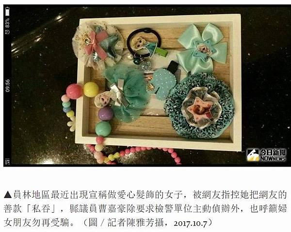 ▲員林地區最近出現宣稱做愛心髮飾的女子,被網友指控她把網友的善款「私吞」,縣議員曹嘉豪除要求檢警單位主動偵辦外,也呼籲婦女朋友勿再受騙。(圖/記者陳雅芳攝,2017.10.7)