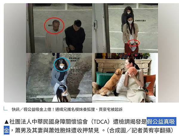 ▲社團法人中華民國身障關懷協會(TDCA)遭檢調揭發是假公益真吸金,蕭男及其妻與蕭姓胞妹遭收押禁見 。(合成圖/記者黃宥寧翻攝)