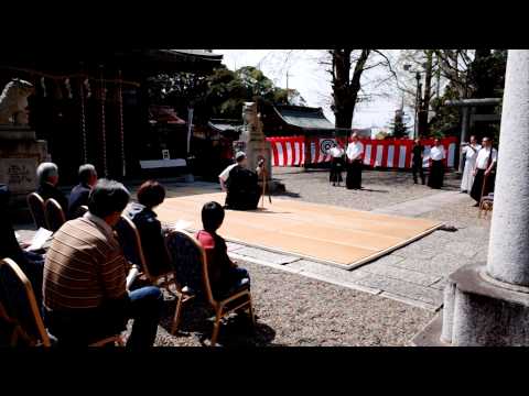 上圖面向右方的三人與面向左方的三人(有一個人被遮住了),都是扮演武士的角色,但是身份有別。面向右邊、手執箭的人是下位者,在儀式中並不鳴弦,而是負責為上位武士(面向左方)裝備弓箭。