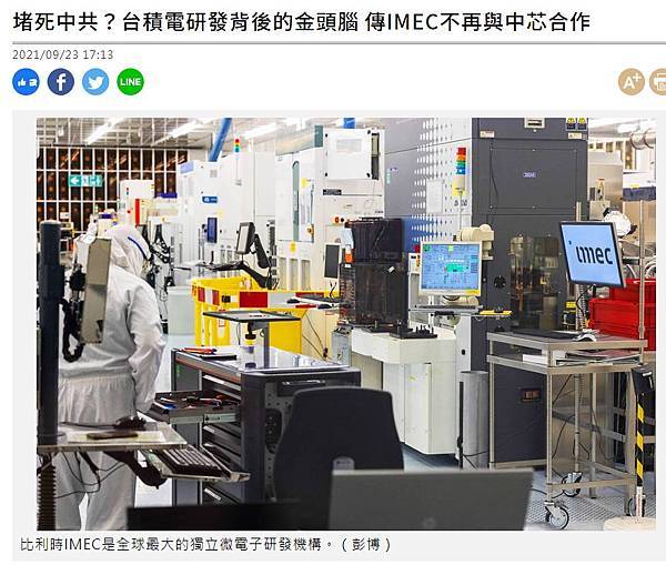 報導稱,由於中國工程師再也無法與 IMEC 託管的全球技術訊息進行交流,IMEC 對西方和中國技術領域之間日益擴大的差距,也無能為力,此意味著,IMEC想在地緣政治衝突日益升高之下,保持類似瑞士的中立性,恐怕難上加難。堵死中共?台積電研發背後的金頭腦 傳IMEC不再與中芯合作 - 自由財經 https://bit.ly/3u4NJOi