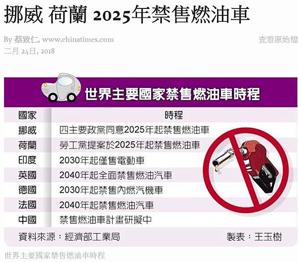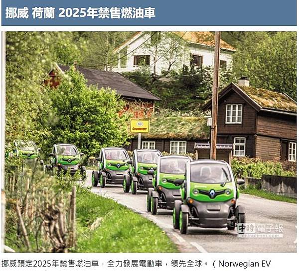 為減緩氣候暖化與降低對石油的依賴,世界各國積極發展零碳交通,並陸續公布禁售燃油車時間表。挪威和荷蘭宣布在2025年禁售燃油車,腳步領先全球。這兩國不論在電動車的普及程度與相關基礎建設均是佼佼者。