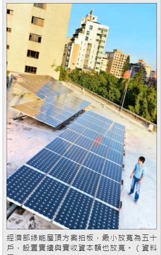 經濟部綠能屋頂方案拍板,最小放寬為五十戶,設置實績與實收資本額也放寬。(資料照)