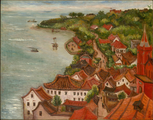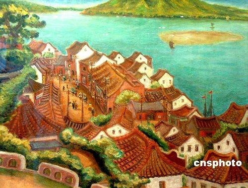 圖為台灣本土畫家陳橙波名畫「鼓浪嶼」。(記者陳文嬋翻攝)