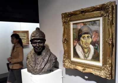 「澄海波瀾—陳澄波大展」2014陳澄波百二誕辰東亞巡迴大展,刻在台南舉行,4月之後,還要飄洋過海,到中國北京、上海及日本東京展覽。陳澄波(1895~1947)是日本侵略台灣那一年2月2日生的,2015年才滿120年,他在世間僅52年,把「百歲憂」濃縮渡過了,最後死於國民黨政府報復性的屠殺。陳澄波做為一個畫家的自信,從以上這段家族訪談可以看得出來,但可能連他自己都想像不到,2006年10月在香港蘇富比舉行的「中國當代藝術品」拍賣會上,他1935年的畫作「淡水」,竟然以3484萬港元(約合新台幣1億4千4百多萬元)賣出,打破徐悲鴻「愚公移山」那年稍早的3千3百萬港元,創下華人油畫世界拍賣紀錄。