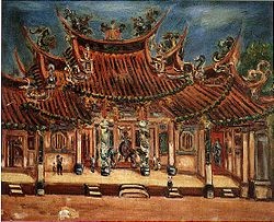 從中國返台時,由於陳澄波對中國水墨畫的深入了解,心目中有別於西洋畫的「東洋畫」,已和日本畫家以日本文化為本位的所謂東洋畫,有了非常大的差距。「我特別喜歡倪雲林(按,即倪瓚)與八大山人兩位的作品。倪雲林運用線描使整個畫面生動,八大山人則不用線描,而表現偉大的擦筆技法。我近年的作品便受這兩人影響而發生大變化。我的畫面所要表現的,便是線條的動態,並且以擦筆使整個畫面活潑起來…」(註12)有人說他想要脫離正統路線,走入半抽象、抽象,林玉山的看法卻不同,認為「澄波仙其實不是,在他眼光中所見常是與我們相反的」,他畫圖時,透視法等都和別人不同,只是畫出他心目中想畫的樣子罷了。(註13)