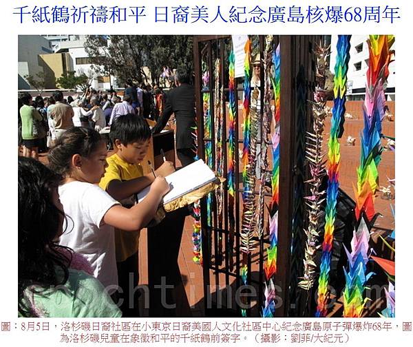 - See more at: http://www.epochtimes.com/b5/13/8/7/n3935166.htm%E5%8D%83%E7%B4%99%E9%B6%B4%E7%A5%88%E7%A6%B1%E5%92%8C%E5%B9%B3-%E6%97%A5%E8%A3%94%E7%BE%8E%E4%BA%BA%E7%B4%80%E5%BF%B5%E5%BB%A3%E5%B3%B6%E6%A0%B8%E7%88%8668%E5%91%A8%E5%B9%B4.html#sthash.kZACVMmF.dpuf
