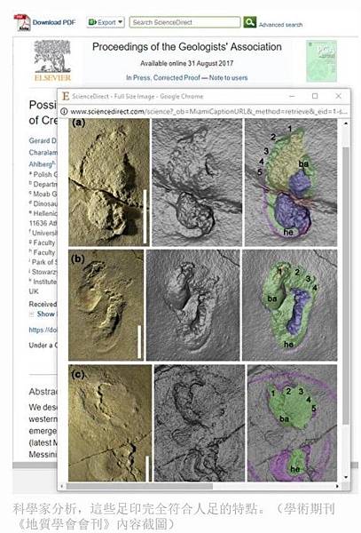 科學家分析,這些足印完全符合人足的特點。(學術期刊《地質學會會刊》內容截圖)