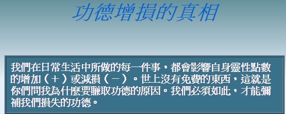 另外一點,修行者若要往返六道渡生沒有障礙,福報更是重要,沒有大福報就進不了惡道之中,這是因為第六識缺少很多善的名色以克服第八識惡道的種子,詳情修行者自證即可了知。