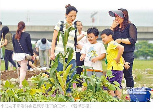 小朋友不斷端詳自己親手種下的玉米。(張翠芬攝)