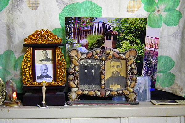 我們很驚訝地發現,在「惠民」辦公室一角,有一個用布簾圍起的房間,就一張床大;床沿窗壁上擺了好幾張泛黃照片,一張是爸爸和媽媽的兩吋大頭照,一張則是三個當神父的兄弟合照,還有一張是叔叔,還有一張義大利的老家,阿爾卑斯就再過去一點點…。