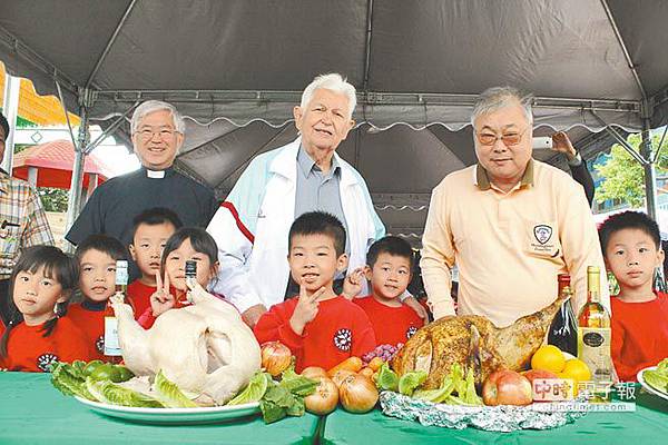 甘神父為台灣早療教育的貢獻,讓台灣養火雞協會成員大受感動,昨天專程帶著烤火雞到伯利恆基金會附設的慈母幼兒園和小朋友共度感恩節。