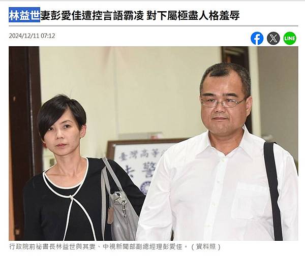 林益世妻彭愛佳遭控言語霸凌 對下屬極盡人格羞辱