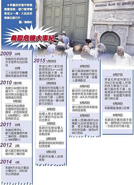 此外由於歐洲央行決定不再對希臘提高緊急流動性援助上限,根據資深官員透露,希臘提款機現金恐到本周中就會用盡。