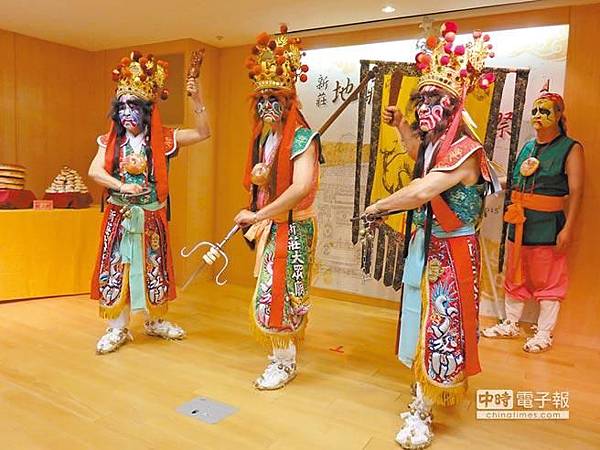 新莊「文武大眾爺聖誕」文化祭即將於15日起跑,昨天介紹遶境祈求平安的官將首儀式,為民眾祈福。(林金池攝)