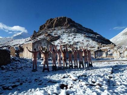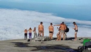一批外籍登山客在京那巴魯山裸體拍照。(圖片取自網路)
