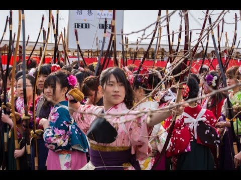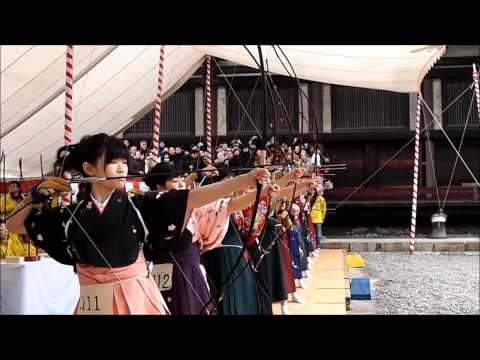 其中在京都市的國寶「三十三間堂」,20歲青年們身穿傳統服飾拉弓,進行新春慣例的「首次拉弓」儀式。