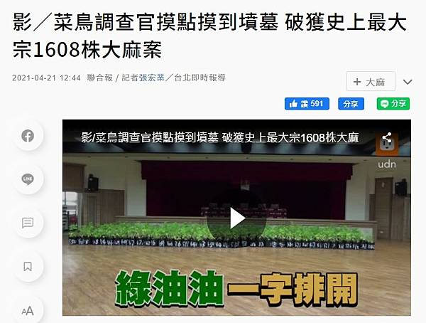 影/菜鳥調查官摸點摸到墳墓 破獲史上最大宗1608株大麻案 | 焦點事件 | 社會 | 聯合新聞網 https://bit.ly/3dCsL2T