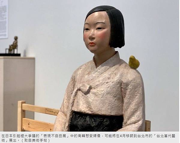 在日本引起極大爭議的「表現不自由展」中的南韓慰安婦像,可能將在4月移師到台北市的「台北當代藝術」展出。(取自美術手帖)