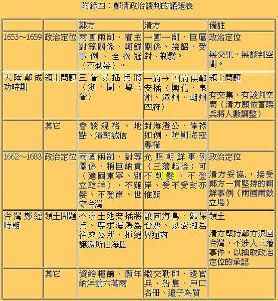 鄭經在台建立東寧政權,滿清帝國曾數度和他們談判。一六七九(康熙十八)年清國向鄭經提出最後和談條件,清國代表致書鄭經說:「自海上用兵以來,朝廷屢下招撫之令,而議終不成,皆由封疆諸臣執泥削髮登岸,彼此齟齬。台灣本非中國版籍,足下父子自闢荊榛…」(平南將軍貝子賴答致鄭經諭文)。