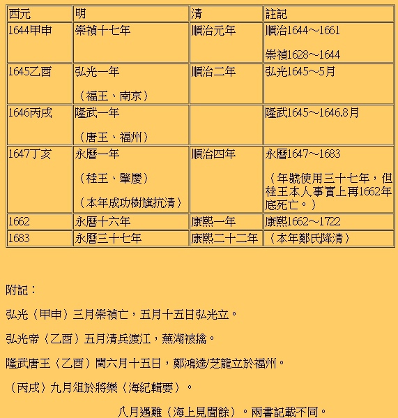 說明:1.西元與年號起訖月日並不一致。2.大事欄內的月份仍以年號為據。