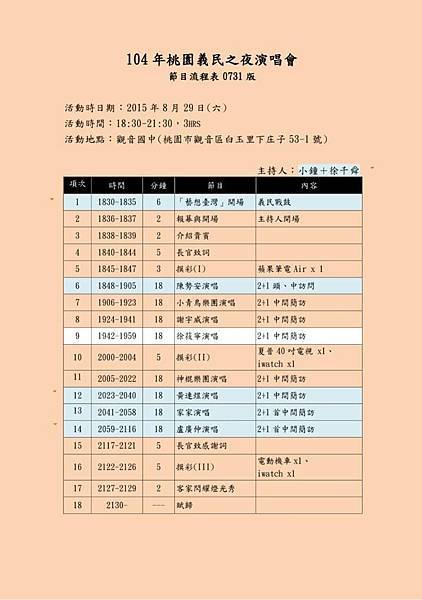 〔記者黃美珠/新埔報導〕義民節是每年農曆七月廿日,今年國曆時間是九月二日,新埔褒忠亭義民廟總幹事魏北沂說,今年由桃園觀音輪值祭典,系列活動將從八月廿九日(農曆七月十六日)全國分香令旗回娘家開始啟動,過去義民節前一天下午施放水燈,今年改在義民之夜晚會結束後進行。