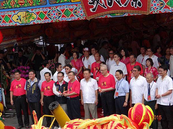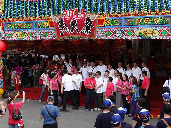 吳副總統與劉主委點響禮炮宣布義民祭活動正式開始(中央社訊息服務20150829 17:30:54)由客家委員會指導補助的「2015客庄十二大節慶―新竹縣義民文化祭」活動,今(29)日在桃竹地區15聯庄大旗陣及全臺客家鄉親組成的踩街、挑擔隊伍引領下正式展開,副總統吳敦義特別前往新竹縣新埔褒忠義民廟主持開幕式,他除了向義民爺祈求國泰民安、風調雨順,也希望義民爺所留下的「保鄉、愛民、崇禮、尚義」客家精神能立足台灣、傳揚世界。