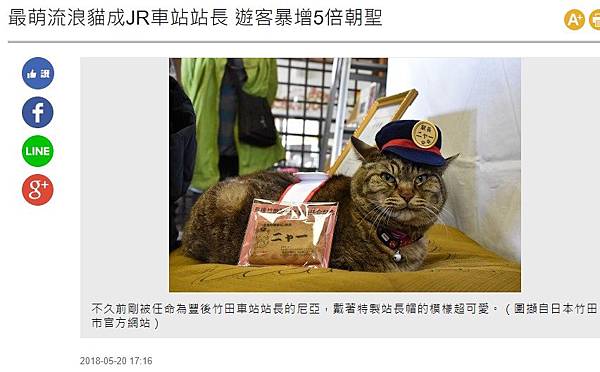 最萌流浪貓成JR車站站長 遊客暴增5倍朝聖 - 國際 - 自由時報電子報 - https://goo.gl/ykP3r5