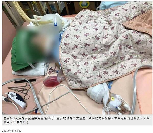 宜蘭縣5歲蘇姓女童遭無照曾姓保母與曾女的許姓丈夫凌虐,語言能力受影響,右半邊身體也癱瘓。(資料照,家屬提供)