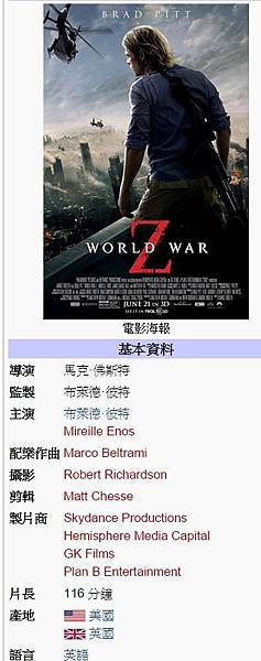 看完整部電影,想到片中那些緊張的情節,胸口仍然有窒息的感覺。大場面,大特效,狂暴的殭屍,無助的人類加帥哥皮特獨闖龍潭,這電影確實值得一看。從這些方面來講這電影顯然是成功的,至少不讓人昏昏欲睡。