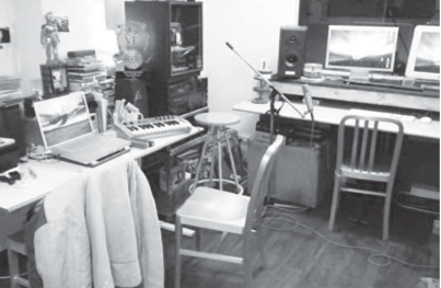 走進位於地下一樓的「貳樓工作室」,映入眼簾的是一個約6坪大小的音樂工作室,以及忙著整理四處散落雜亂物品的黃連煜。