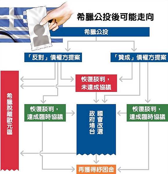 但歐元區債權國和歐洲央行事前矢言,如果希臘公投結果向歐洲說「不」,那麼希臘就準備迎接更嚴苛的紓困方案吧。
