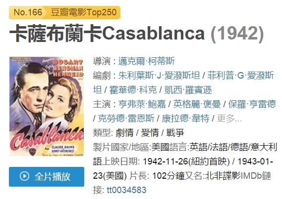 卡薩布蘭卡(豆瓣) - http://goo.gl/3pcnws