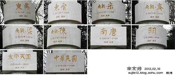 那裡豎立十根柱子,每根柱子代表一個建都南京的朝代清楚的刻著建國及亡