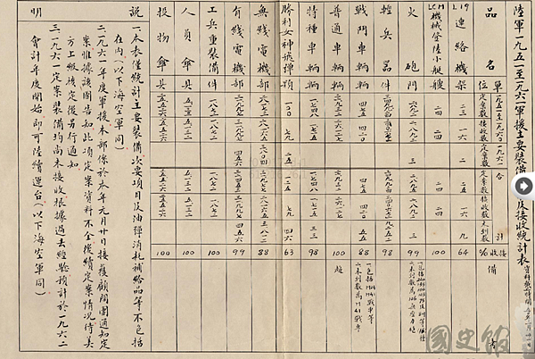 政府在1950年爭取美國軍援時,也曾提報當時三軍概況,三軍主要作戰裝備嚴重不足,台灣的防空雷達網未建立,砲兵與反潛丶軍艦不足,三軍彈藥更是嚴重短缺,75山砲更是僅存102門。圖為國史館檔案中有關1950年台灣陸軍的概況表。(資料來源:國史館)