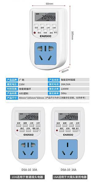 【当日次日达】广乾电子式智能定时插座10A微电脑时控定时开关可定16组 定时器加倒计时插座 循环通断 10A插座适合常规插头开关插座,历史价格