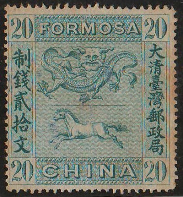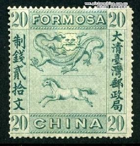劉銘傳也想把台灣郵票正規化,曾委託台灣淡水英國領事館轉由倫敦伯雷特伯裏威金生公司雕刻凹版印製一種新郵票。中心圖案上馬下龍,左右兩旁為中文“大清台灣郵政局”、 “制錢貳拾文”,上下為英文“FORMOSA”和“CHINA"(中國、台灣),俗稱“龍馬票’。但遺憾此票從未在郵政上實用過,(陳志川認為,可能清朝政府沒有核準),卻被加蓋當做火車票使用了。