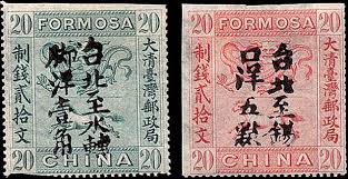 清朝海關郵政曾以小龍郵票“參分銀”和“五分銀”加蓋中文“台灣郵票”4字及斜印英文"FOR-MOSA"(福摩薩)兩種,很明顯,蓋英文者擬給洋人使用,蓋中文者擬為華人使用。這種郵票在英國印刷加蓋(陳志川看法),運送不能及時,加上各郵站郵資計算不便,未曾被劉銘傳採用。