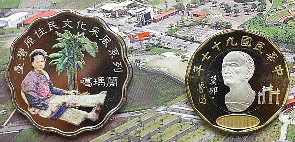 央行自民國87年發行第1套原住民系列套幣組合,已依序發行雅美族(YAMI)、排灣族(PAIWAN)、卑南族(PUYUMA)、魯凱族(RUKAI)、阿美族(AMIS)、鄒族(TSOU)、布農族(BUNUN)、泰雅族(TAYAL)、賽夏族(SAISIYAT)、邵族(THAO)等10套系列套幣。