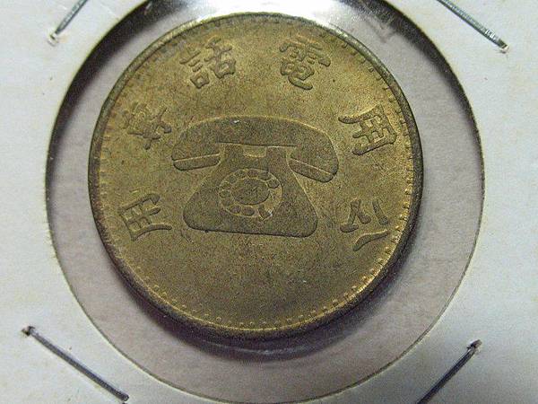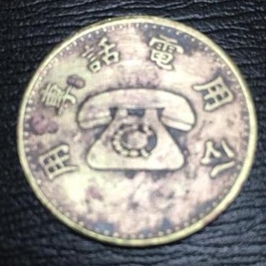 替代一般流通硬幣專供公用電話使用,黃銅材質,大小25mm。