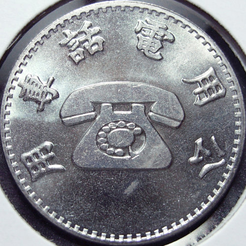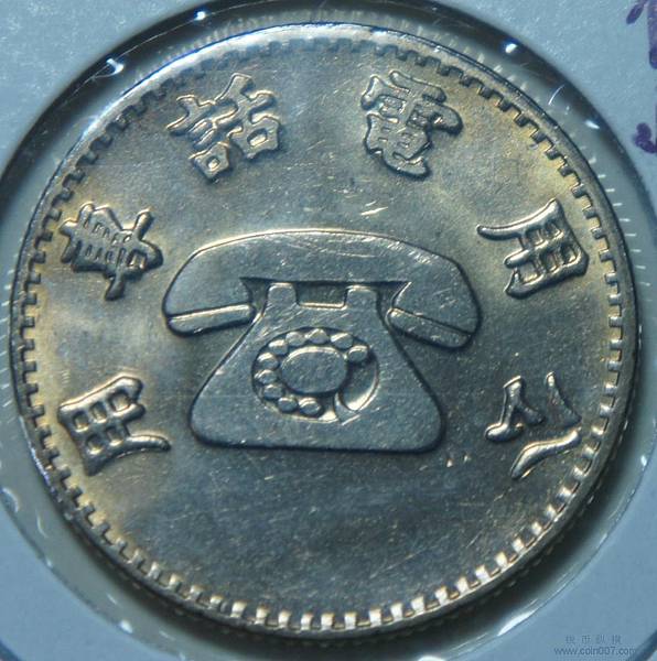 流通用幣:正面:逆時鐘文字"公用電話專用"、電話圖案;反面為十一葉嘉禾,中置電信局標誌。