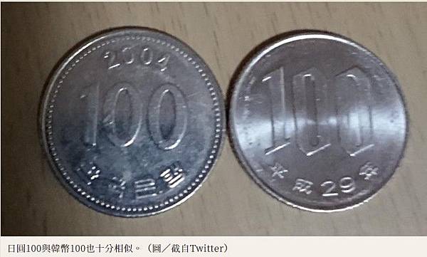 日圓100與韓幣100也十分相似。(圖/截自Twitter)